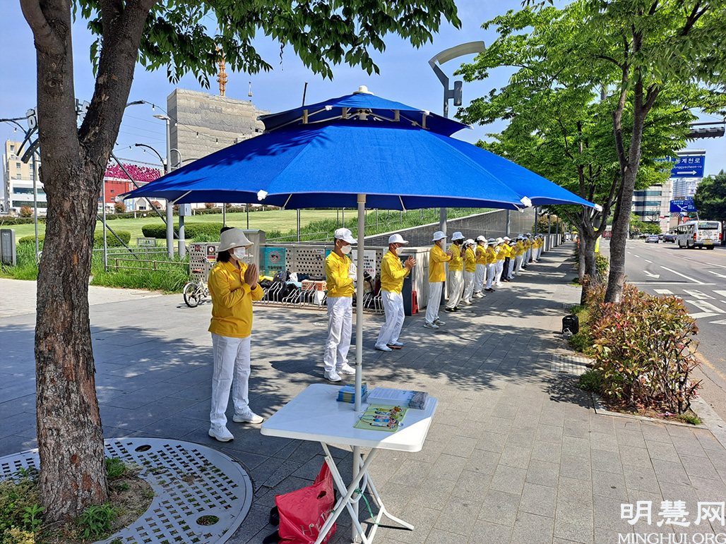 今年的这一天,学员们遵守政府的规定,在包括首尔、大邱、釜山、光州、济州、昌源等全国各地分散举办了多个集体炼功,派发为这天特别制作的传单和《明慧周报》等。