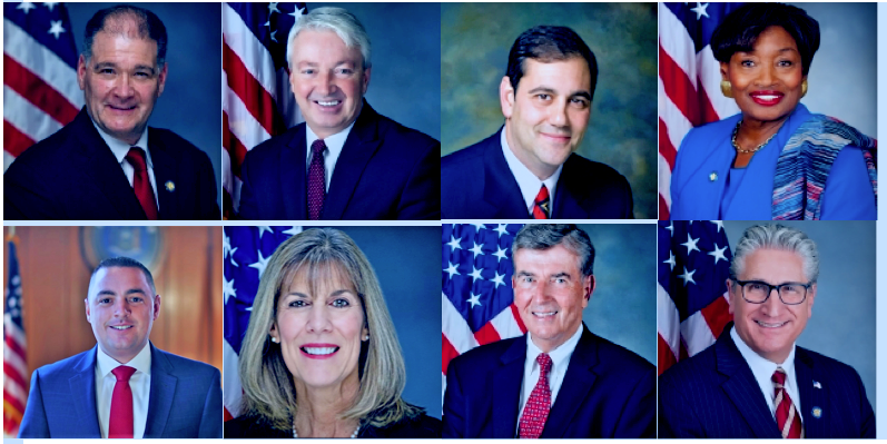 图1:图1:纽约八位州参议员祝贺大法洪传二十九周年。图上,从左至右:纽约州第二选区参议员 马里奥·马泰拉(Mario R. Mattera)、第四选区参议员菲尔·博伊尔(Philip M. Boyle)、第二十四选区参议员安德鲁·兰扎(Andrew J. Lanza)、第三十五选区州参议员多数党领袖安德莱亚·斯图尔特-卡曾斯(Andrea Stewart-Cousins)