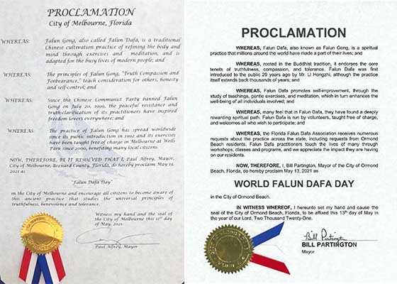五月十三日是世界法轮大法日,也是李洪志先生七十华诞。佛罗里达州很多政要陆续宣告五月十三日为法轮大法日。