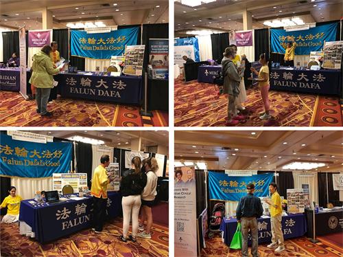 五月十五日和十六日,法轮功学员参加内布拉斯加州第十四届健康展览会,演示五套功法,很多民众前来了解功法。
