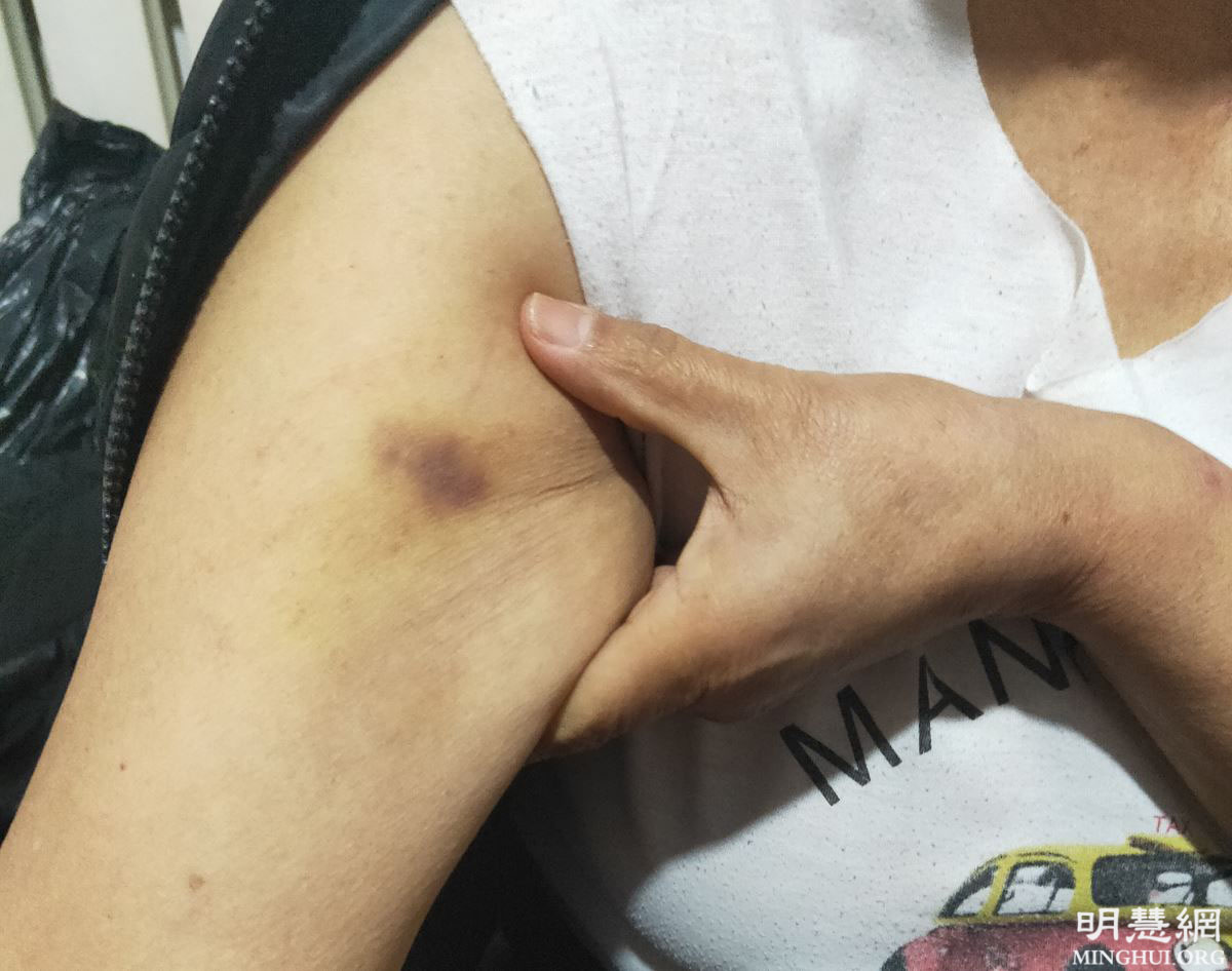 图2:二零二一年三月十九日警察强迫刘英杰按手印造成胳膊淤青