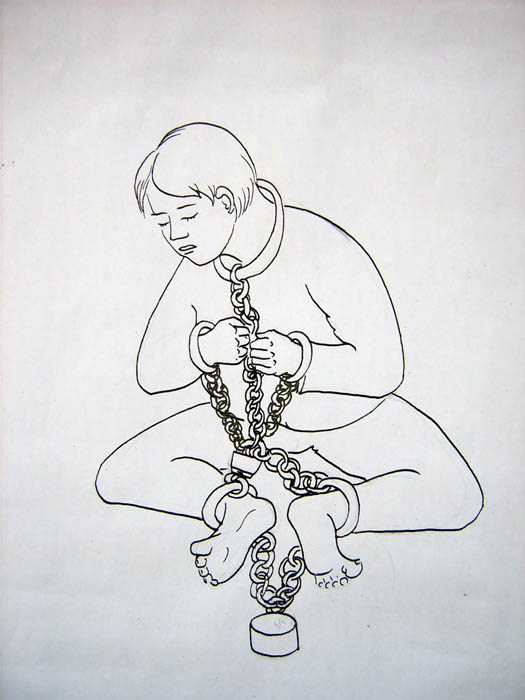 我们回来后,对此事极力抗议,并向所部写信反映,他们也自知理亏,不做任何答复。后来我们要求炼功,他们就把我们二十四小时单手铐在床上。我们二中队八人全都铐着,这样被铐了一个多月。