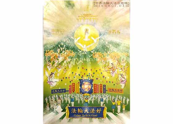 材质:宣纸尺寸:长49厘米×高38厘米 画意:大法弟子向世人传递得救保命的真相,传递着福音。告诉世人:诚念法轮大法......