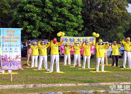 5月23日,来印尼自玛琅、诗都阿佐和泗水的多位法轮功学员在玛琅市兰帕尔广场集体炼功,展示法轮功的美好。当地电视台BATU TV也来到现场采访。