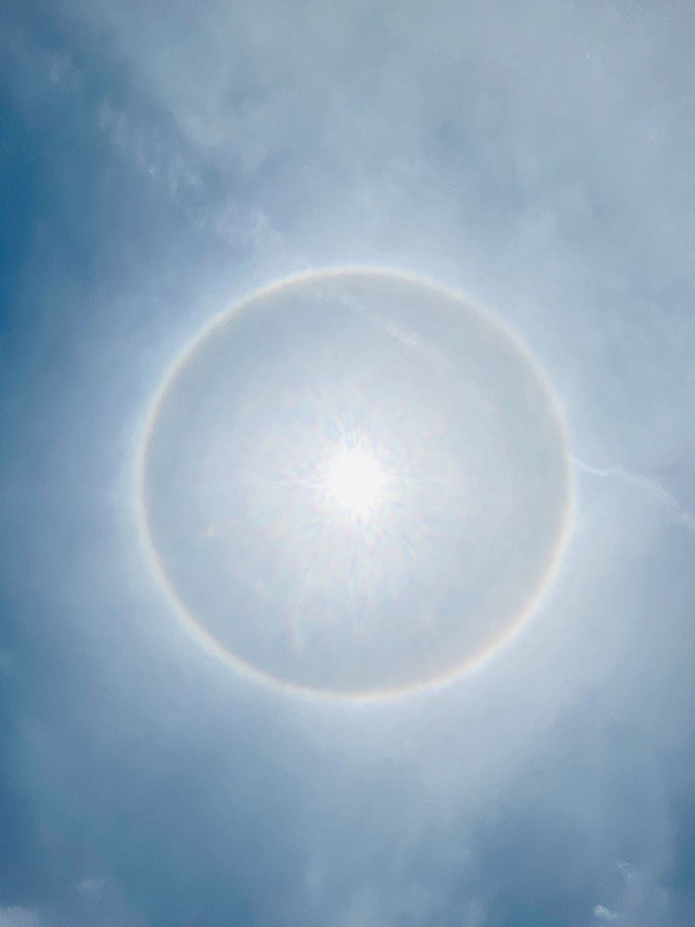 ![]() 图2:五月一日学员用手机拍摄七彩日晕,中间层层金莲,层层交叠的莲花和花瓣片及银龙飞舞而过。 |