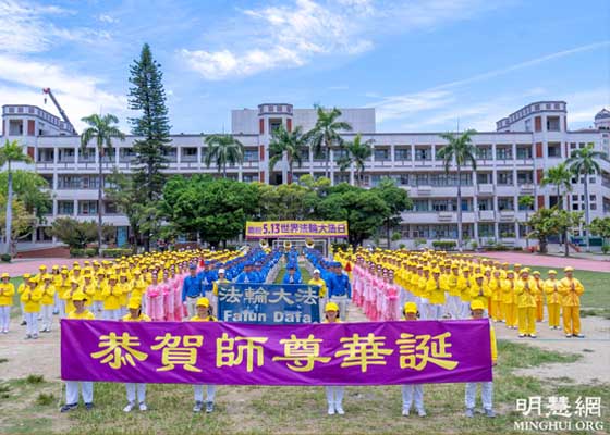 五月十三日是世界法轮大法日。台湾台南法轮功学员举行盛大游行,展现大法美好,庆祝这个伟大的节日,并恭贺李洪志师尊华诞。