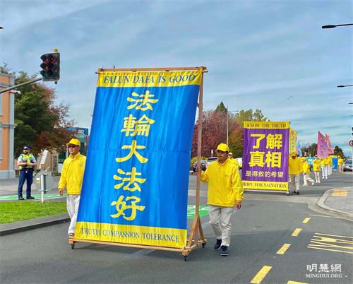 宝玲·威廉姆斯(Pauleen Williams)是一位当地居民,她一边观看游行,一边流着激动的泪水。她说:“这太美了,让我好感动。小孩子们也在乐团里演奏,他们的音乐让我感到全身为之一振,真是值得一看。我十分感恩他们今天所做的一切。我喜欢他们的服装和音乐,一切都恰到好处,十分和谐。实在是太精彩了,让人有一种从内到外都被震撼到的感觉,估计今天在场的警察们也有同感吧。我感谢他们(法轮功学员)传递的真、善、忍信息,我可以感受到他们背后付出的努力。”