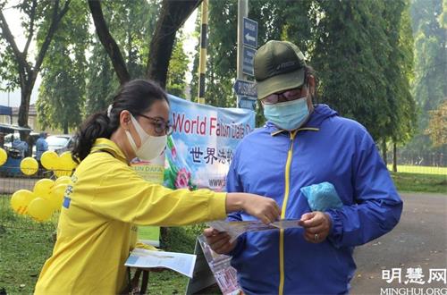 ![]() 图5:与公园游客们分享世界法轮大法日的喜庆 |