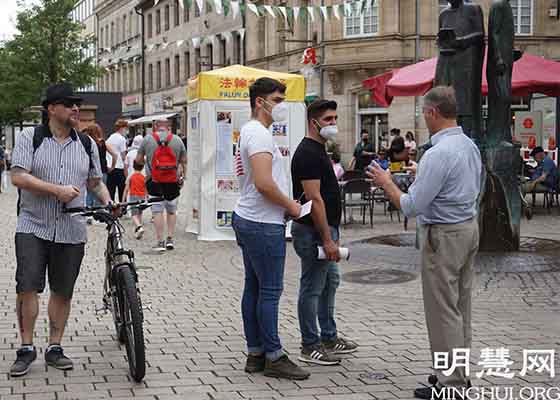 六月十二日,法轮功学员在菲尔特市举办信息日,向菲尔特市居民讲述法轮功真相,同时向民众征集签名制止迫害,并远离中共。