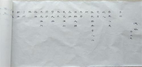 常言说:“字如其人”,杨峰,一位历经重重苦难而仍坚修法轮大法的大法徒,将他的善良、沉稳和坚毅渗透在每个字的笔画中,渗透在字里行间,他对法轮大法的虔诚与敬重,令人肃然起敬。