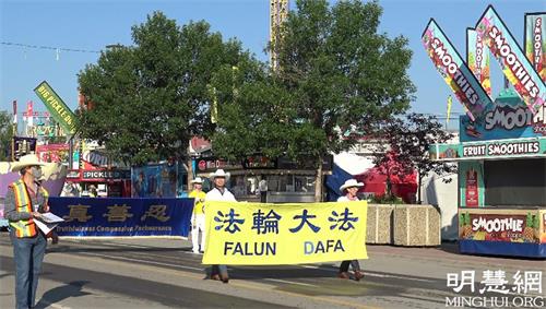 【明慧网二零二一年七月十三日】加拿大卡尔加里牛仔节是北美最著名盛大的户外庆典活动之一,拥有“世界上最精彩的户外表演”,“真正的西部盛会”的美誉。这个有着110年历史的盛举,因疫情于2020年首次取消。二零二一年七月九日,牛仔节在人们的期盼中如期举行。但举办形式有所变化,游行以电视和网络现场直播的形式面向观众。今年的直播,九日当天就已达4.5万人次。随后电视台做了游行直播亮点片段剪辑,法轮大法方阵再次被精彩展现。