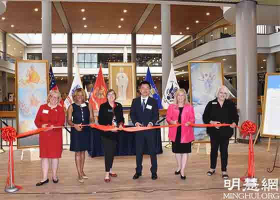 二零二一年七月八日上午,“真善忍国际美展”在美国乔治亚州政府金顶议会大厦的对面政府大楼的大厅开幕对外展出。