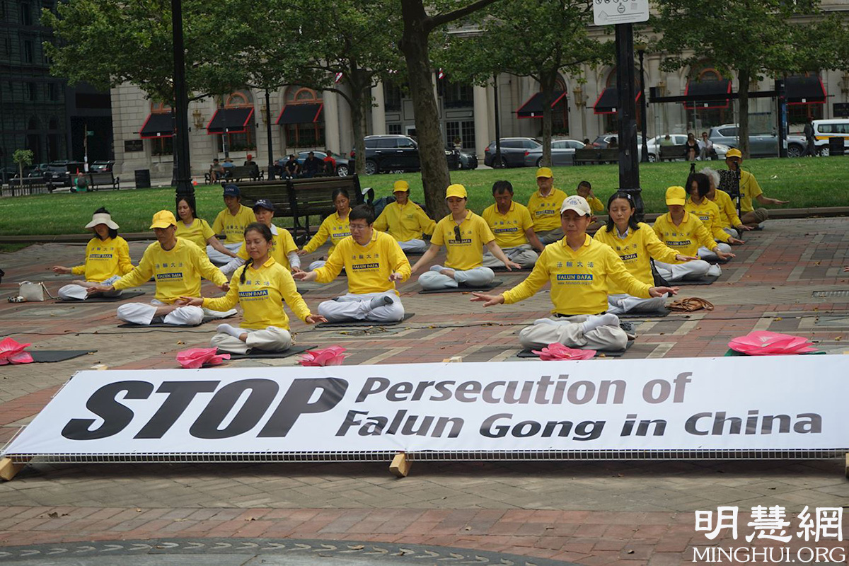![]() 图1:波士顿法轮功学员炼功反迫害 |