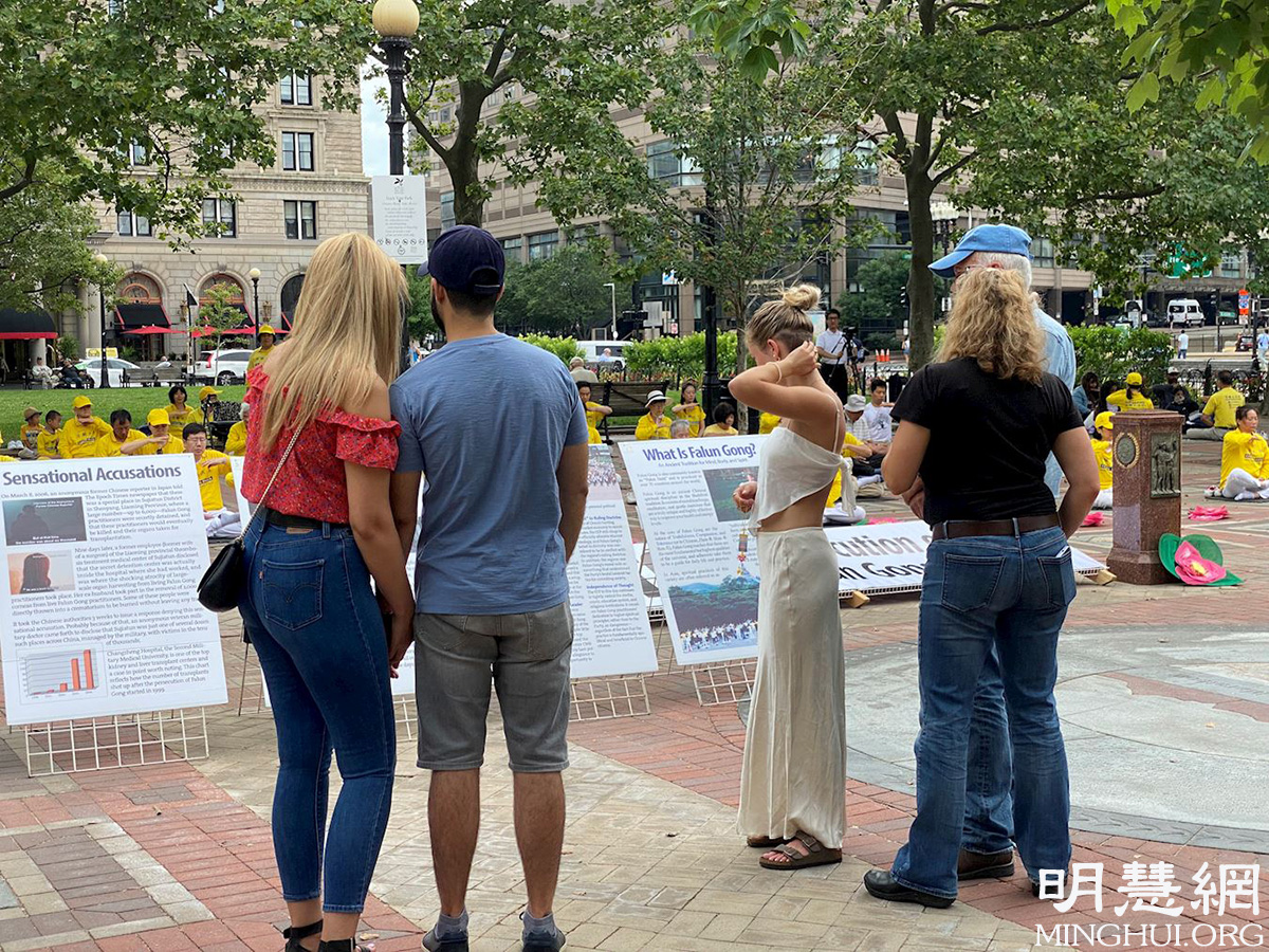 ![]() 图2:波士顿法轮功学员向市民讲真相 |