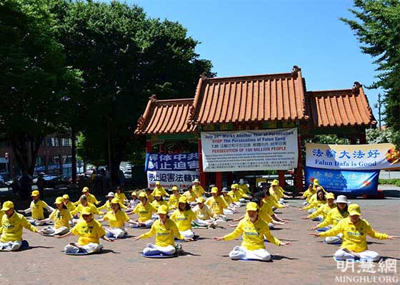 西雅图法轮功学员中国城举行7·20反迫害集会