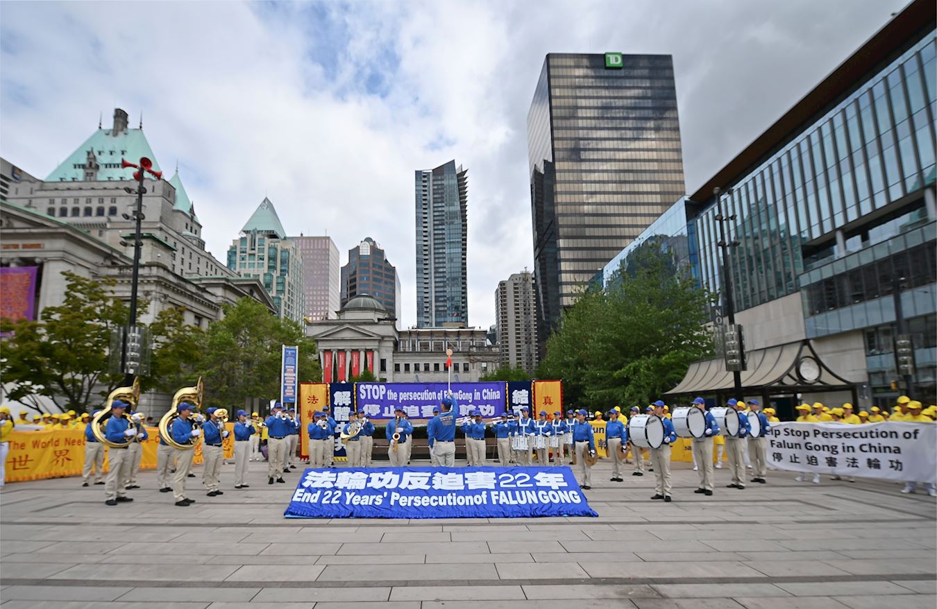二零二一年七月十七日,加拿大温哥华部份法轮功学员在市中心举行了大型集会和游行,揭露中共暴行,呼吁各界伸出援手,共同制止中共对法轮功的迫害。