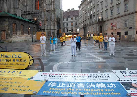 七月十七日,奥地利法轮功学员在首都维也纳举行活动,向各地游客和当地民众揭露中共对法轮功学员长达二十二年的残酷迫害。
