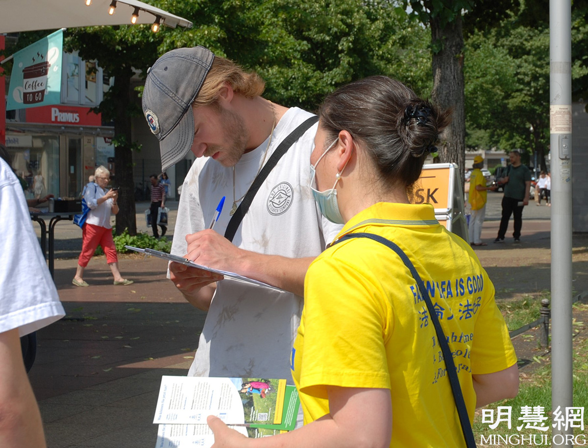 他从真相资料上已经读到,中共从九九年开始的对法轮功的迫害已经持续了二十二年了:“(迫害)让我很感伤,我会帮助一起制止这场迫害,我也要帮助他们(法轮功学员)一起游行反抗迫害,征集签名。”
