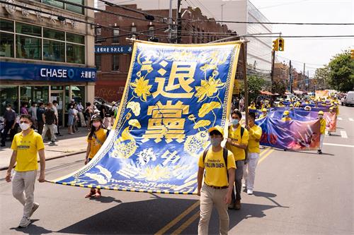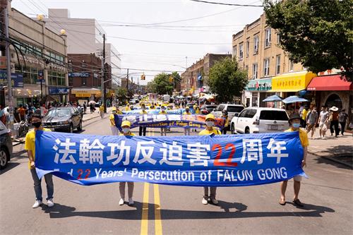 【明慧网二零二一年七月二十日】今年是法轮功反迫害二十二周年,二零二一年七月十八日,纽约地区部份法轮功学员近千人在纽约的第三大华人社区——布鲁克林(又称布碌仑)第八大道游行,希望世人赶紧了解真相,同时呼吁曾加入中共党团队组织的中国人三退保平安。