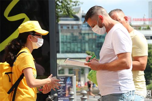 他从真相资料上已经读到,中共从九九年开始的对法轮功的迫害已经持续了二十二年了:“(迫害)让我很感伤,我会帮助一起制止这场迫害,我也要帮助他们(法轮功学员)一起游行反抗迫害,征集签名。”