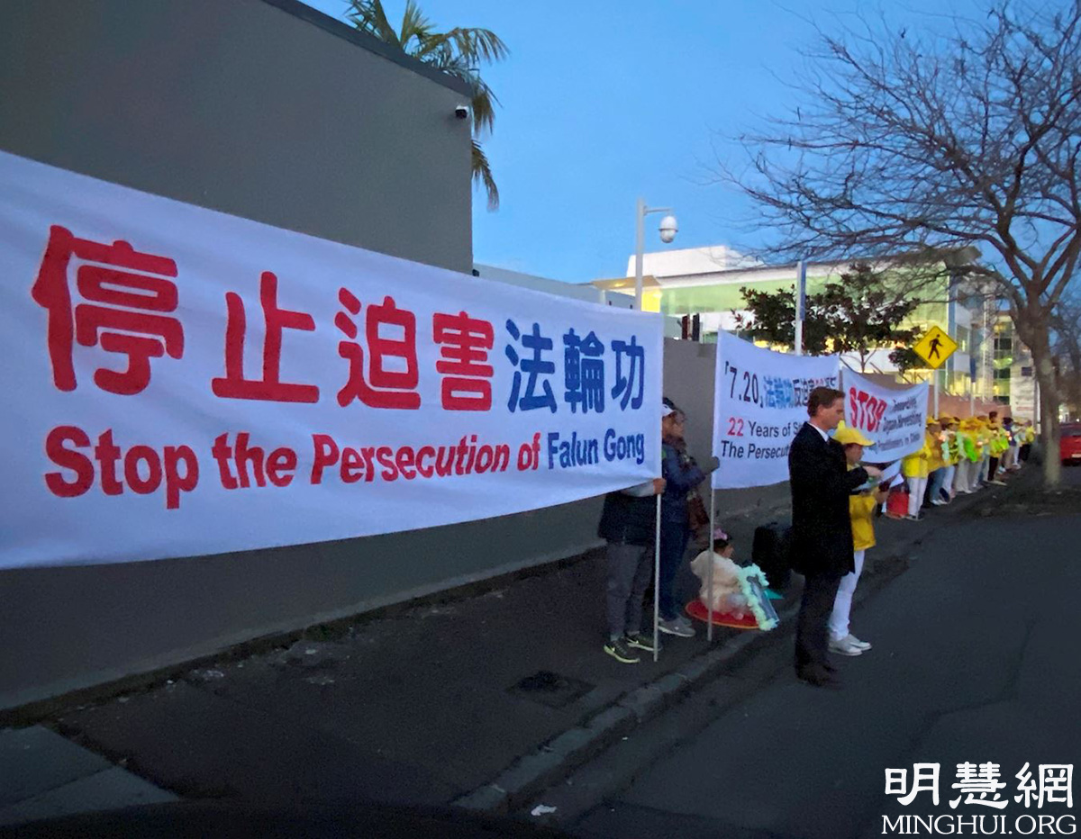 【明慧网二零二一年七月二十一日】(明慧新西兰记者站报道)二零二一年七月二十日傍晚,新西兰法轮功学员在奥克兰中领馆前举行烛光悼念活动,悼念在二十二年里被中共残酷迫害而失去生命的法轮功学员,并呼吁新西兰社会各界反对中共暴行。