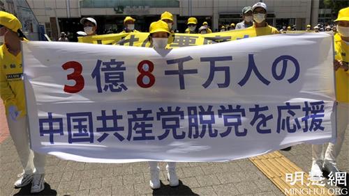 【明慧网二零二一年七月二十一日】日本法轮功学员于二零二一年七月十八日,在神奈川县横滨市举行反游行和烛光夜悼活动,呼唤人们的正义和良知,呼吁共同解体危害世界的中共邪恶政权,制止长达二十二年的对法轮功学员的迫害。很多看到游行的民众表示是时候结束中共统治、停止迫害法轮功了。