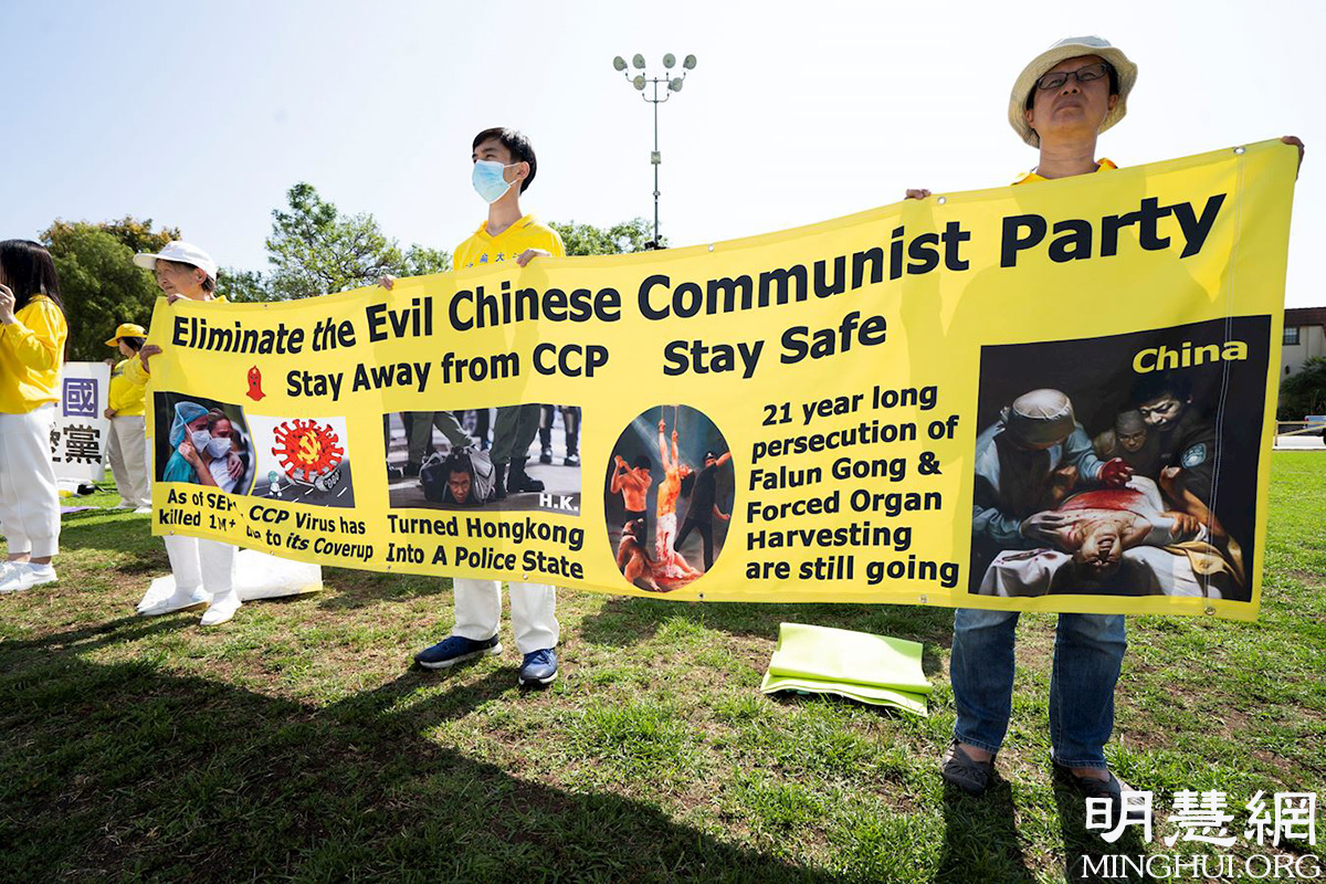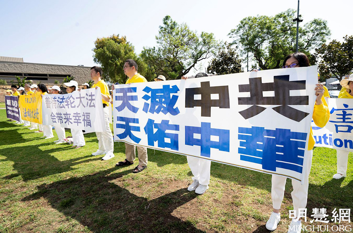 集会上,南加多个团体的代表前来声援集会并发言。他们在发言中,赞佩法轮大法奇迹般的正面力量与法轮功学员的高尚品德;谴责中共对普世价值和信仰自由的残害;同时呼吁世人推翻暴政、不要做中共活摘器官罪行的帮凶。