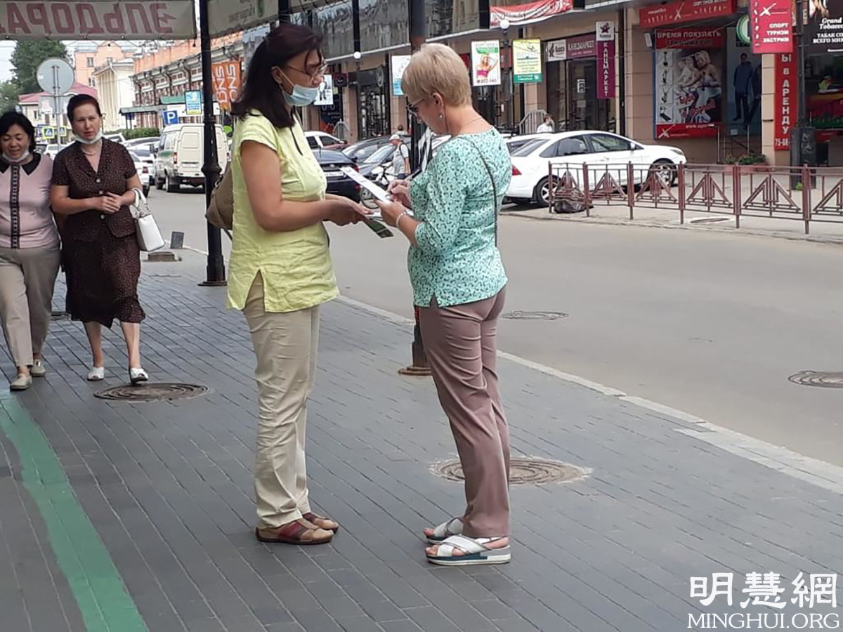 连日来,来自莫斯科、符拉迪沃斯托克、伊尔库茨克、安加尔斯克等俄罗斯城市的法轮功学员在伊尔库茨克、安加尔斯克、贝加尔地区向民众发放宣传单,揭露中共罪行和强摘活人器官的情况。