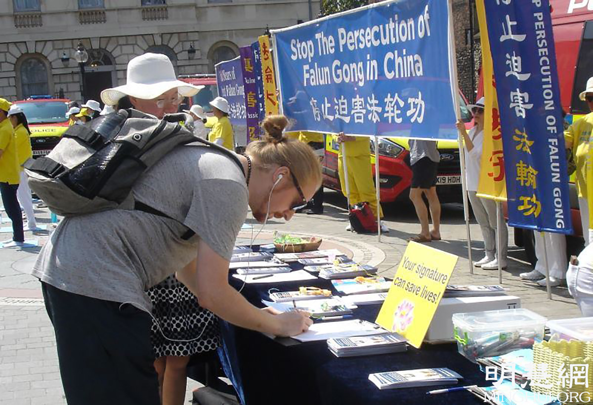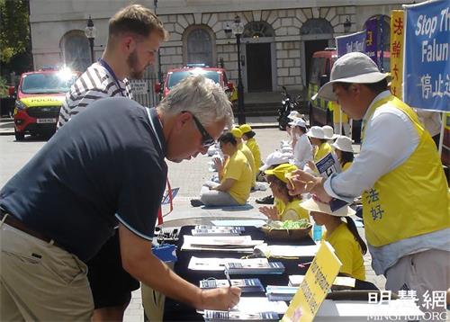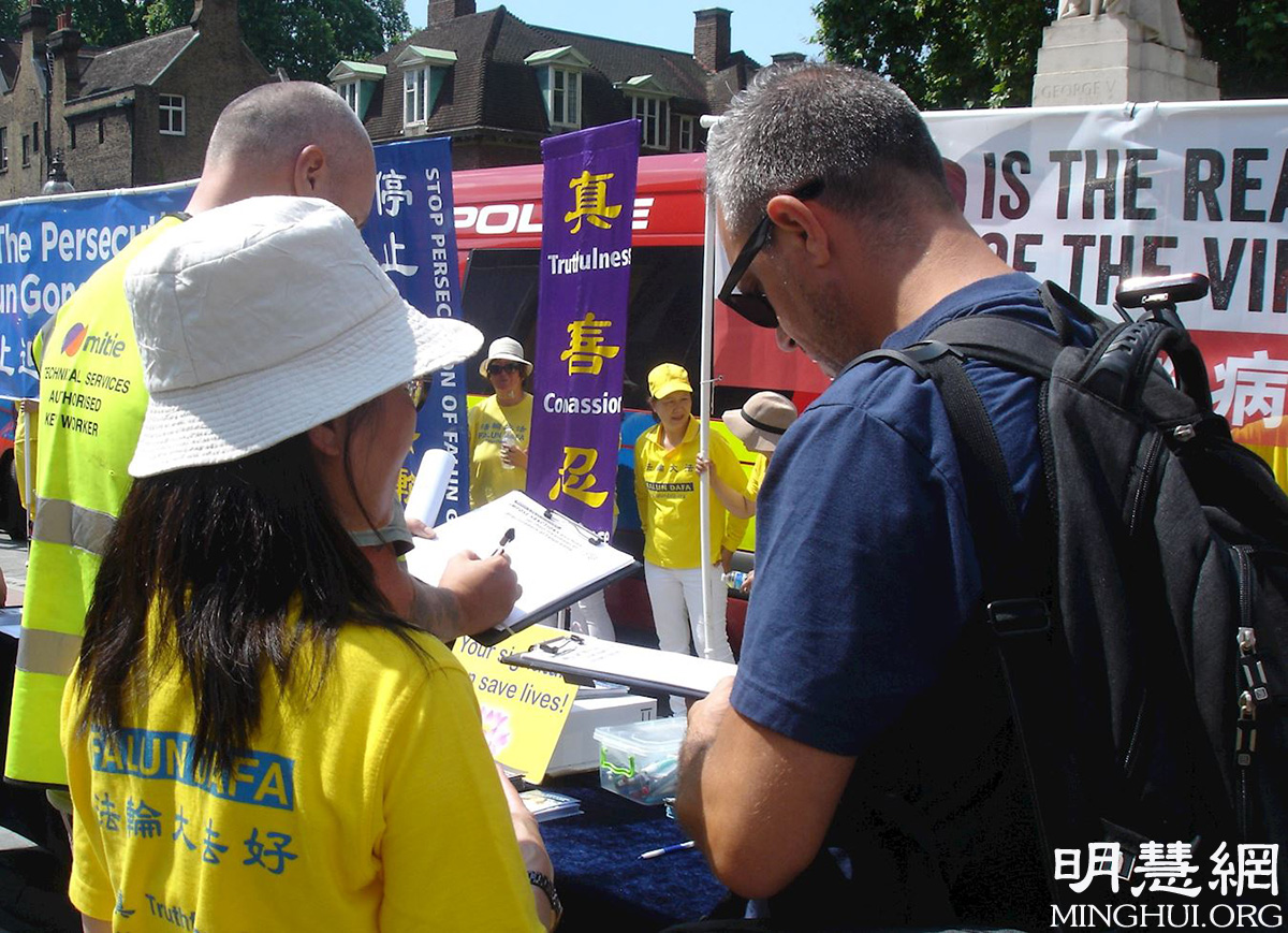 【明慧网二零二一年七月二十二日】二零二一年七月二十日周二,部份英国法轮功学员在伦敦议会大厦对面的议会广场举行功法展示和征签活动,这是继十八日周日在此举行反迫害集会之后,再一次的七二零反迫害集会。二十二年前的这个日子,中共发动了对法轮功这个善良修炼团体的迫害,法轮功学员也开始了和平反迫害的历程。