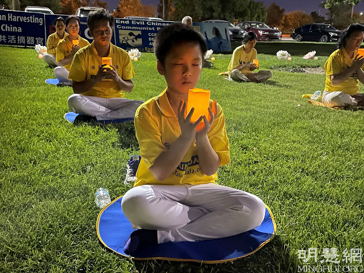 由法轮功小学员参与的诗歌朗诵“二十二载的讴歌!”拉开了当晚烛光夜悼的第一幕,以此来纪念为捍卫佛法真理而毫无畏惧,为救度天下苍生不惜奉献出宝贵生命的法轮功学员。诗歌回顾了廿年前,中外法轮功学员无畏生死的走上天安门广场打横幅、和平请愿,告诉世人“法轮大法好!”的壮举,及其后讲真相,揭穿红魔谎言,把大法福音传播到全世界的慈悲善举。