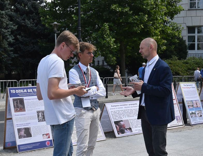 他表示:“从1999年7月20日中共开始迫害法轮功到今天已经整整22年。中国法轮功修炼者持续被非法剥夺自由、被关押和被摘取器官,手段残忍,亘古未有,彰显中共的邪恶本质,这不仅是一场严重的人权危机,更是以国家名义有组织的犯罪。共产主义的终极目的是毁灭全人类,波兰也不会是例外,这就是我今天放下工作来到这里,来到波兰议会楼前的目的,希望波兰政府了解法轮功真相后能警醒共产主义中国在经济利益背后对人类的侵蚀和危害。”