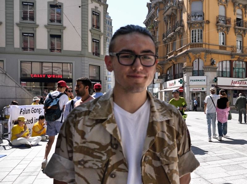 来自苏黎世的米盖勒(Miguel)和洛桑的朋友散步时路过圣罗朗广场。他表示:“一些人仅仅因为打坐就被迫害关进监狱,实在是一种耻辱!”