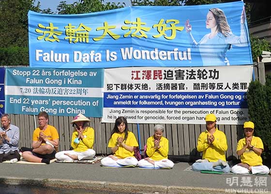 七月二十日,挪威法轮功学员在挪威首都奥斯陆举办系列活动,呼吁制止中共在过去二十二年中对法轮功学员的残酷迫害。