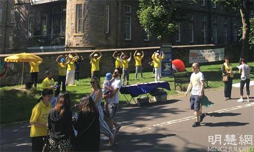 抗议活动使受雇于中共使馆的保安,也有机会了解法轮功受迫害真相,以及法轮功学员二十二年和平反迫害的经历。他对法轮功学员修炼法轮功后所体会到的身心健康感兴趣,他表示要进一步了解法轮功。