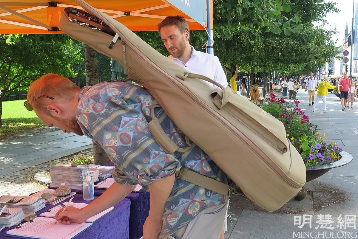 罗宾逊(Robin)是石油钻井技术学校的学生,他和他的女友艾玛(Emma)在给挪威政府和国会的呼吁信上签了名。“我们支持反迫害,这很重要。我们会更多地了解此事。”他们希望挪威政府和国会能够采取行动,帮助制止迫害。