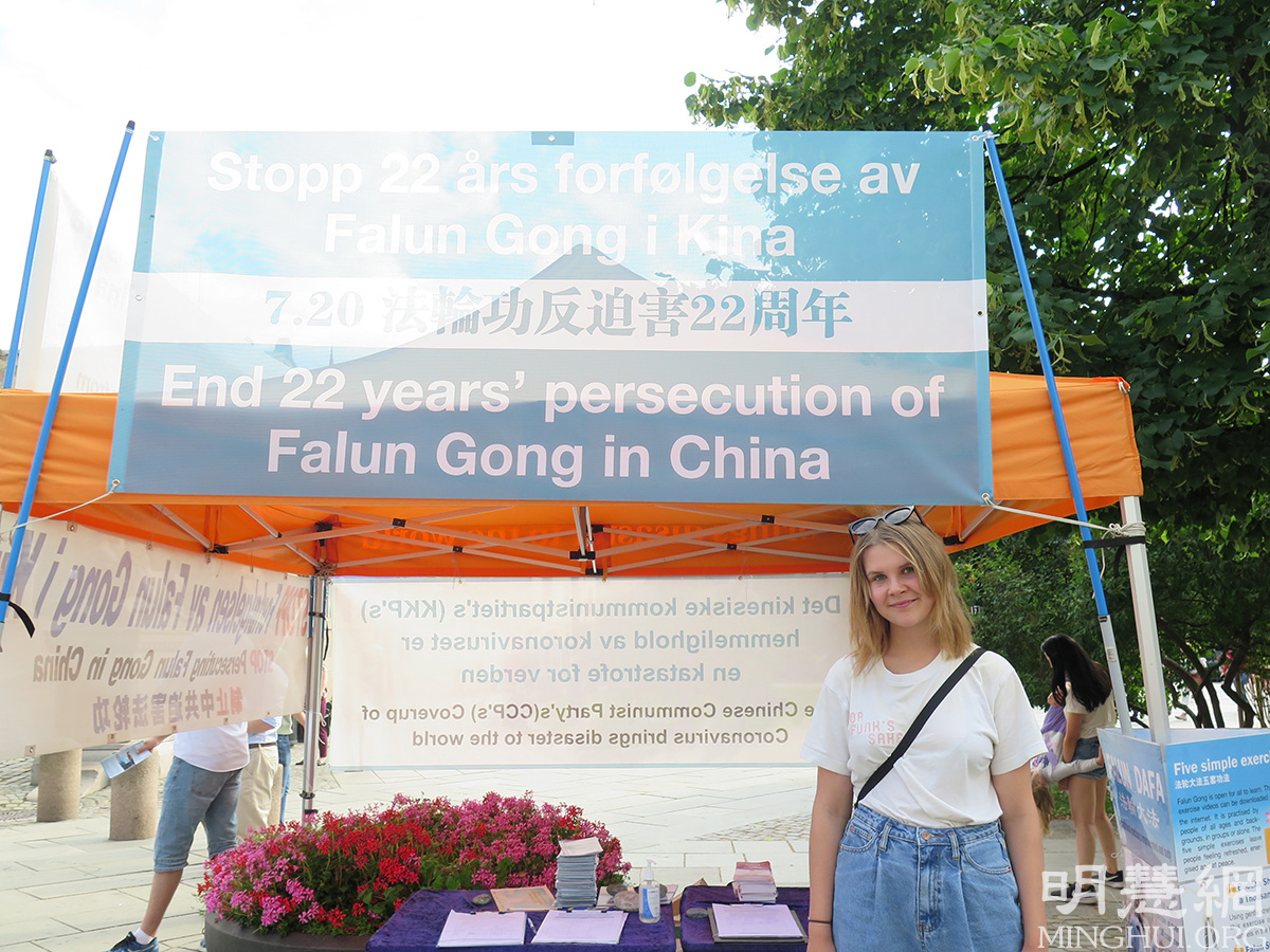 【明慧网二零二一年七月二十七日】二零二一年七月二十日,挪威法轮功学员在挪威首都奥斯陆举办系列活动,呼吁制止中共在过去二十二年中对法轮功学员的残酷迫害