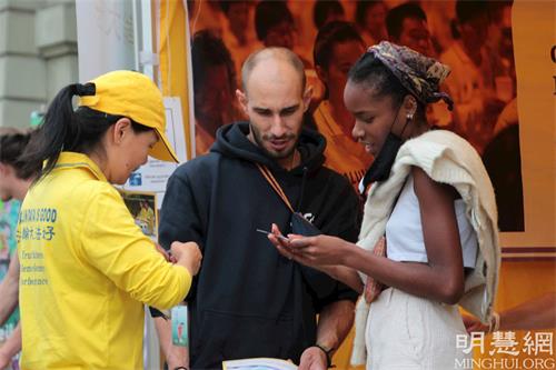 虽然是第一次听说法轮功,格伦达看着在闹市街道静静的炼功的学员们,觉得“非常有吸引力”。她也认为学员办的活动非常好,可以让更多人知道中共的罪行。