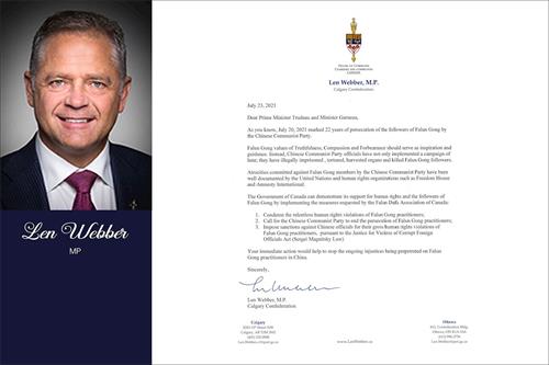 加拿大国会议员伦·韦伯致函加拿大总理特鲁多和外交部长加诺,要求加拿大政府采取行动制止中共迫害法轮功。