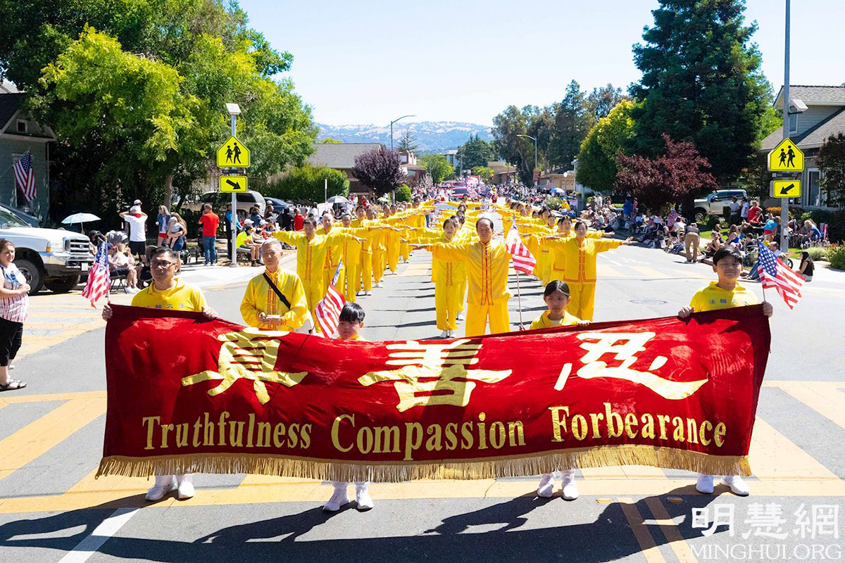 游行主办方工作人员丽莎·克莱斯勒(Lissa Kreisler)一听到是在问法轮功的队伍,她马上说:“天哪,他们真是训练有素,很有纪律,而且他们行进时,脸上还带着笑容。”