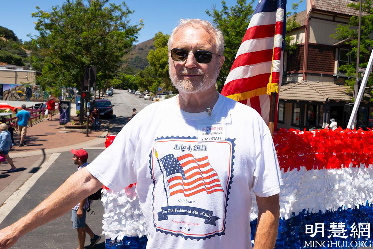 谈到刚经过的法轮功美西天国乐团,他说,他很喜爱这支队伍,“他们的服装很好看,他们能成为游行的一部份,太好了,我很高兴他们来参加游行。”