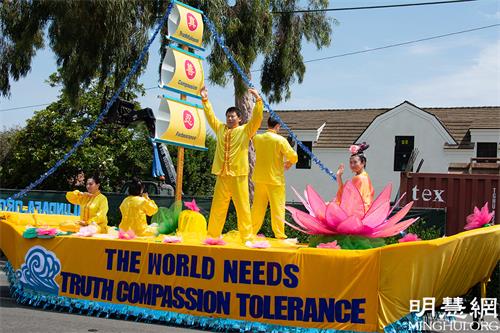 在有限的时间里,学员们相互配合,从繁忙的日程中抽出时间,赶在遊行之前完成了花车制作,并在遊行当天花车评比中获得所在大组的头奖。主办方在颁奖时,感谢法轮功学员的“努力与坚持”,多年来参加遊行,为社区带来“亮丽的花车,美好和希望。”