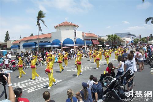科罗纳多岛是美国海军基地,其国庆遊行是圣地亚哥县最大的遊行,往年每年吸引数万民众观看。去年因中共病毒疫情(COVID-19)暂停一次。今年有一百多个队伍参加,圣地亚哥法轮功学员今年的队伍包括横幅队、花车和腰鼓队。
