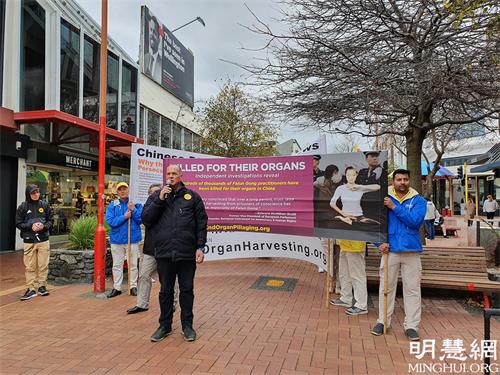 中午时分,法轮功学员们从威灵顿市中心的古巴街游行至米德兰公园(Midland Park),然后游行至国会大厦。在国会大厦门前,主持人讲述了法轮功在中国的弘传,中共对法轮功学员的迫害,以及中共活摘法轮功学员器官牟取暴利的罪行。