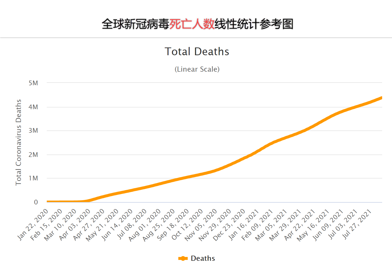 染疫死亡速度从疫情开始到今年的7月7日死亡人数达400万时,一直处于上升状态。死亡人数达到100万时用了9个月,从100万达到200万时花了4个月,从200万达到300万时则只有3个月,从300万达到400万时不到3个月。