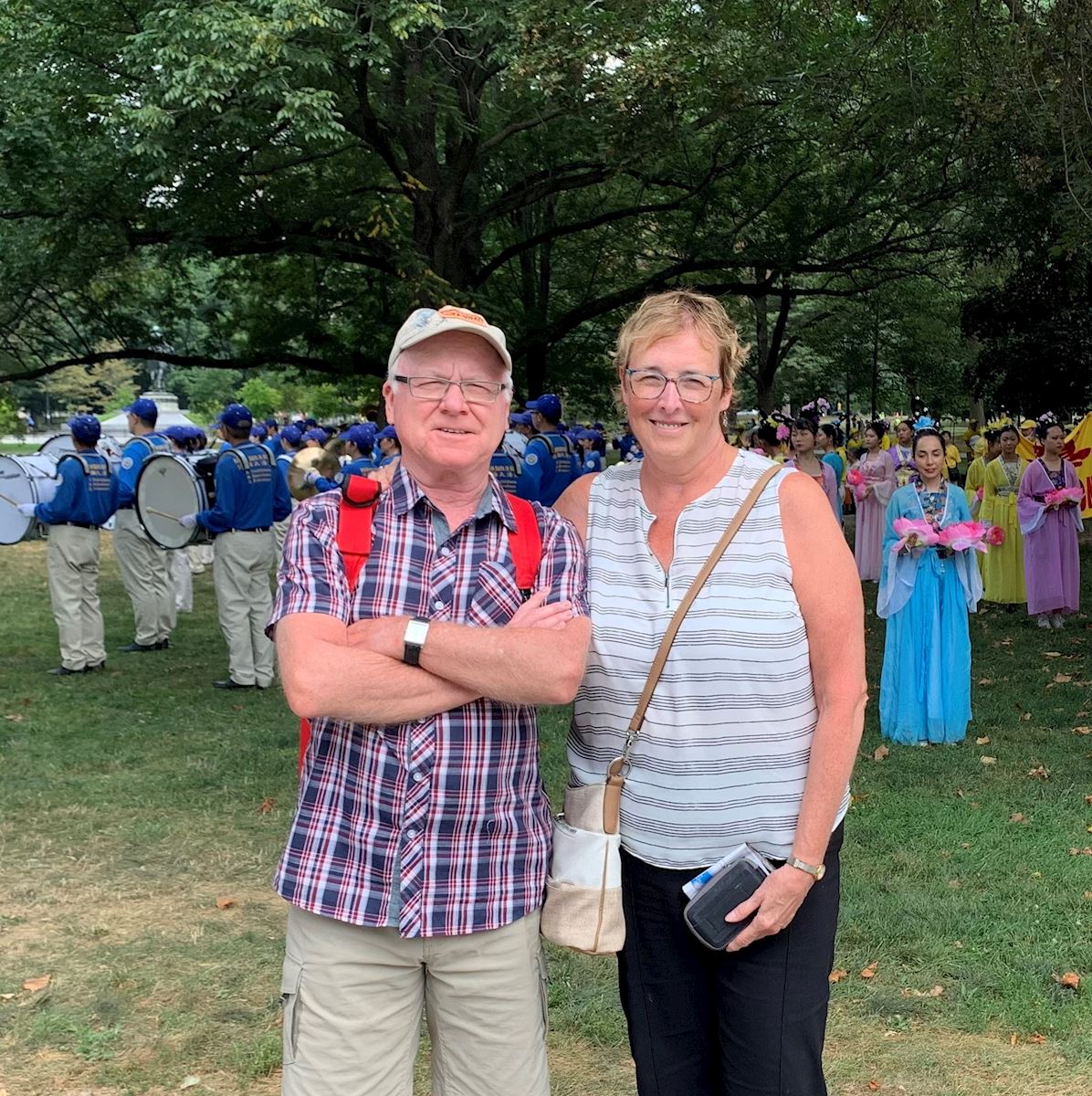 西人丽莎(Lisa)女士在为各游行方阵拍照,她接过学员递上的传单,表示自己一定会进一步了解法轮功。她说:“我两年前去过中国旅游,我知道在中国大陆各方面都被中共政府所控制,人们没有真正的自由。”