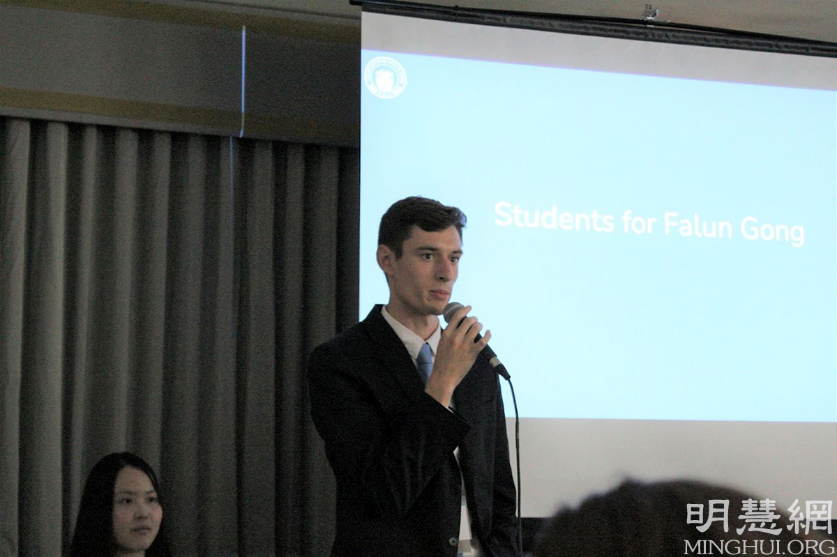 法轮功学生会在峰会的第三天举办了一场80分钟的演讲,详细介绍了法轮功的美好,法轮功学员受到的迫害,以及过去22年的和平反迫害历程。聆听演讲的与会者纷纷表达了他们对反迫害的支持,并就如何制止中共活摘器官提出了建议。
