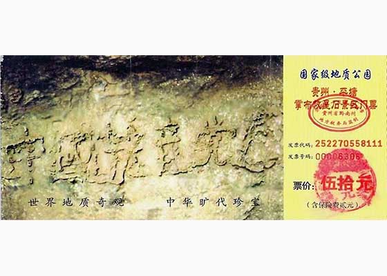 2004年8月2日,CCTV《走近科学》栏目报道了贵州省平塘县,国家地质公园掌布河谷内一块带字的石头。这块巨石长七米,高三米,石面上凸显六个大字“中國共產党亡”,其中“亡”字特别大。