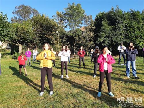 ![]() 图2~3:大法小弟子参加集体炼功。 |