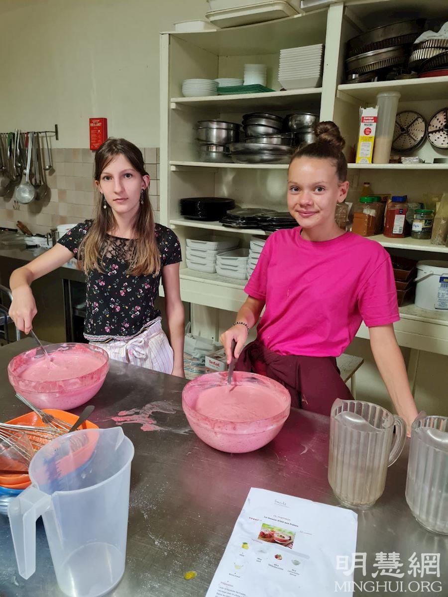 厨房女员工曼侬(Manon)请来了《转法轮》一书开始阅读,一天下午,趁空闲的时候,她参加了大组的集体学法。事后她交流自己的学法感受说,在学关于天目的时候,她真的看见自己天目的眼睛了,感觉十分奇妙,表示会学下去。