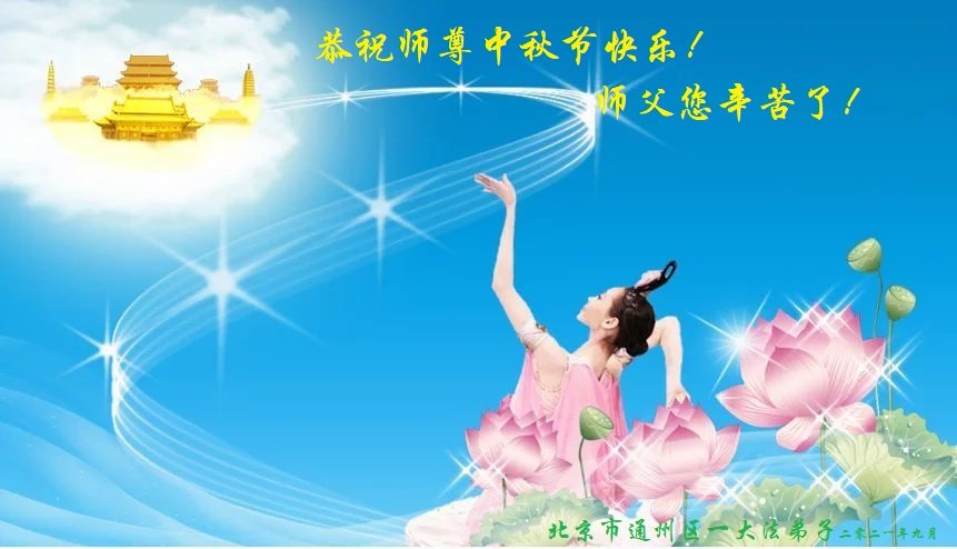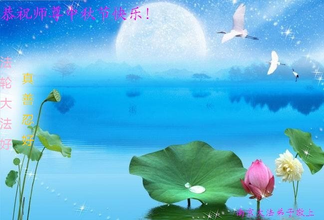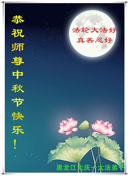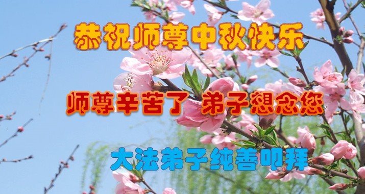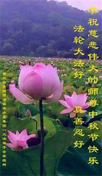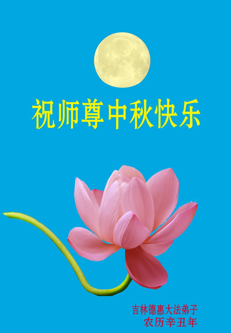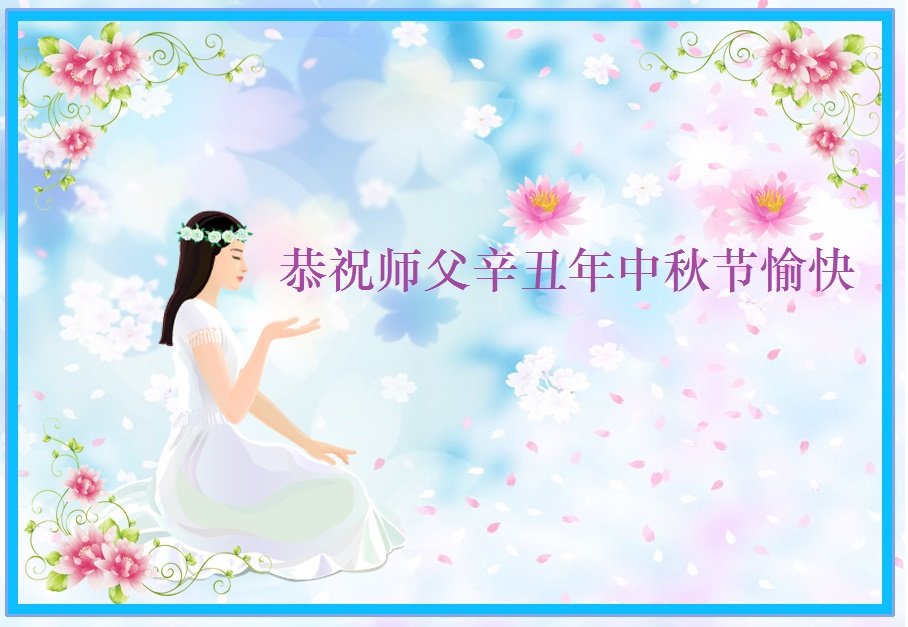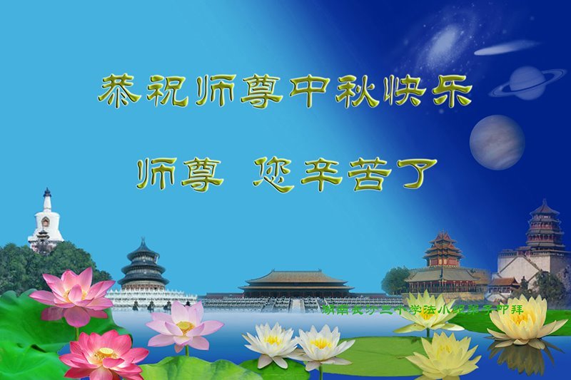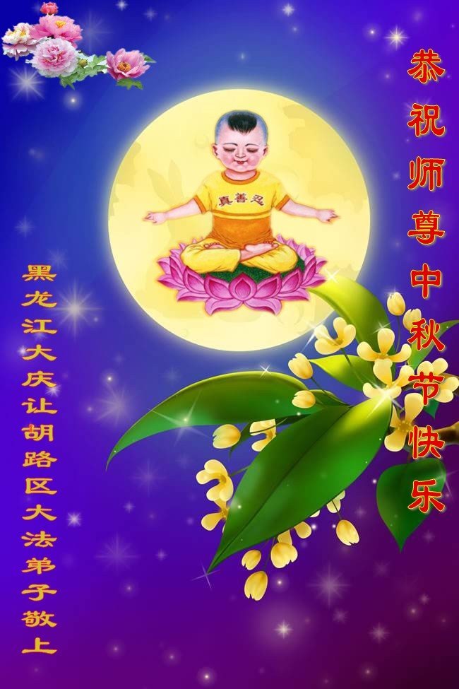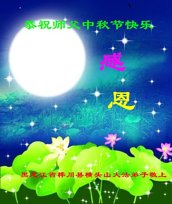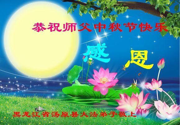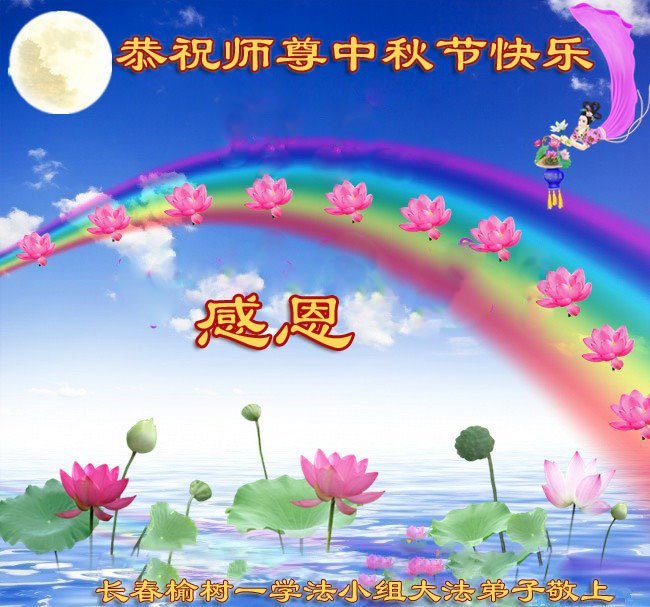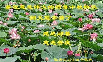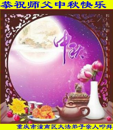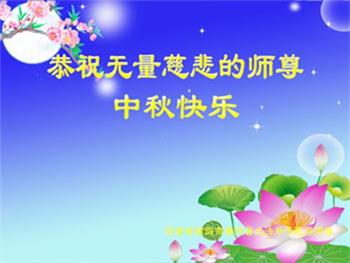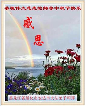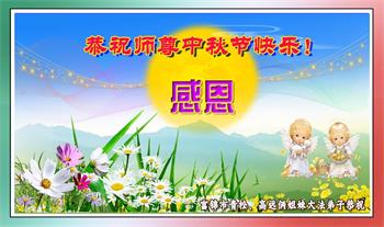 脑中装着大法,生命就有了希望,心中装着众生,再苦也不觉的辛劳,感恩师尊将法轮大法的法理捧到了我们的面前,赋予我们大法弟子的神圣荣光。每逢佳节倍思亲,值此中秋佳节即将来临之际,衷心遥祝师尊中秋节快乐!愿法轮大法好的佛光普照人间!